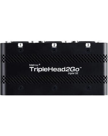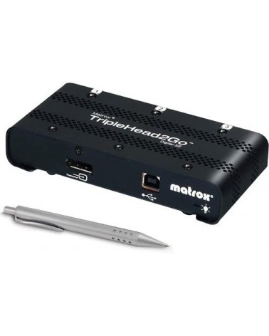 El adaptador multipantalla externo Matrox TripleHead2Go Digital SE agrega hasta tres monitores DVI a su computadora portátil o de escritorio. Se conecta a la salida de video de su sistema y utiliza la GPU existente del sistema para proporcionar gráficos y video sin comprimir de alta calidad en todos los monitores. Ideal para profesionales que requieren más espacio en el escritorio para lograr la máxima productividad, especialistas en A/V profesionales que buscan crear configuraciones multipantalla únicas y jugadores que desean una experiencia totalmente inmersiva. Esta pequeña caja negra le permite ejecutar diferentes aplicaciones en cada pantalla o ver una aplicación en múltiples monitores.