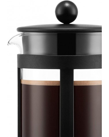 Peso del producto: 0.49 Libras. Usos específicos del producto: cafe. Tipo de filtro: Reutilizable. Material: vidrio, plástico, acero. Tipo de cafetera: Prensa francesa. Función especial: Se puede usar en lavavajillas. Dimensiones del producto: 3.3P. x 6.6W x 4.5H centímetros. Color: Negro. Capacidad: 0.35 Modificador desconocido. Marca: Bodum. Clasificación en los más vendidos de Amazon: Ver el Top 100 en Hogar y cocina. Departamento: Unisex - Adulto. País de origen: Portugal. Número de modelo del producto: 1783-01. ASIN: B0000A8VUN. Fabricante: Bodum. Producto en Amazon.es desde: 27 marzo 2012. Dimensiones del producto: 8.23 x 16.83 x 11.43 cm; 222.26 gramos. Descatalogado por el fabricante: No.