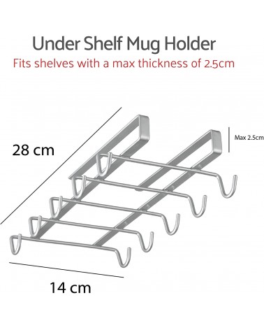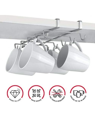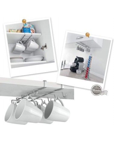 Peso máximo recomendado: 10 Libras. Dimensiones del producto: largo x ancho x alto: 28 x 14 x 6 centímetros. Componentes incluidos: COLGADOR 10 TAZAS 'MY-MUG' 28x14x6cm METALTEX. Peso del producto: 260 Gramos. Estilo: My Mug. Tipo de montaje: Montaje en puerta. Material: Metal. Marca: Metaltex. Color: Gris.
