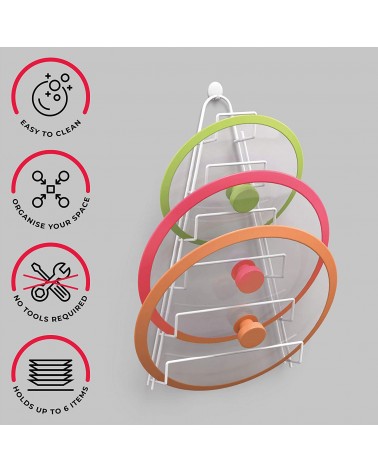 Metaltex 36280614, Colgador para 6 tapaderas, color Blanco, 23 x 7 x 42 cm...