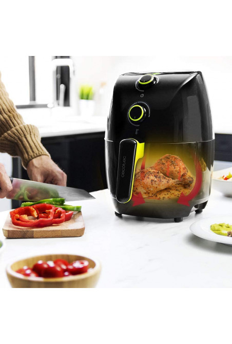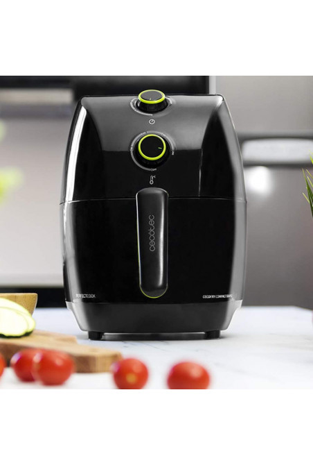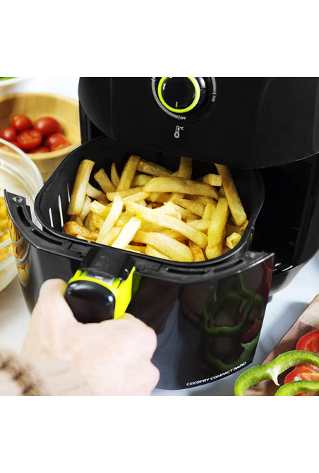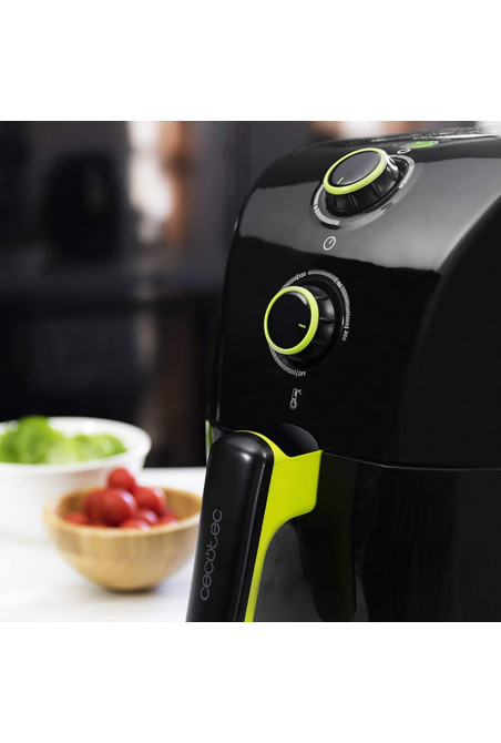 Cecotec Freidora sin Aceite 1,5L de Aire Caliente Cecofry Compact Rapid Black. 900 W, Dietética, Capacidad para 400 gr, Temperatura 200ºC, Tiempo Ajustable, Incluye Recetario 1,5 L | Verde Negro