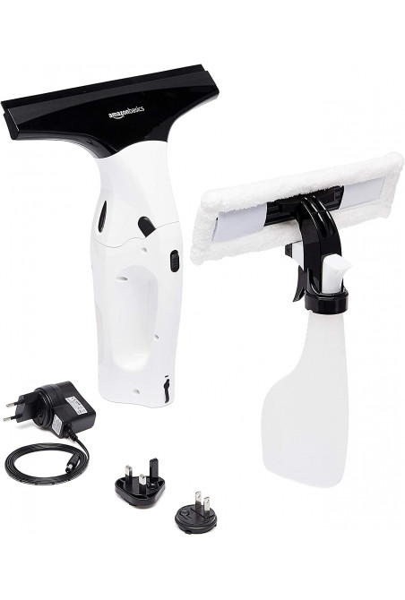 Amazon Basics - Juego de aspiradora limpiacristales con batería recargable de litio para ventanas, azulejos, espejos y mamparas de ducha, enchufe para UE, Reino Unido, EE. UU. y Japón incluido