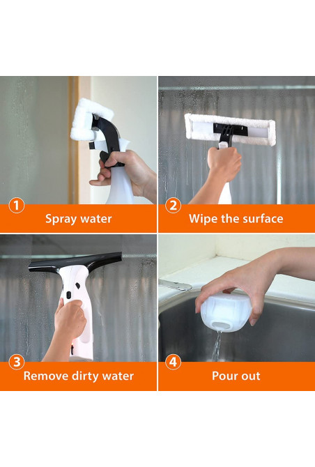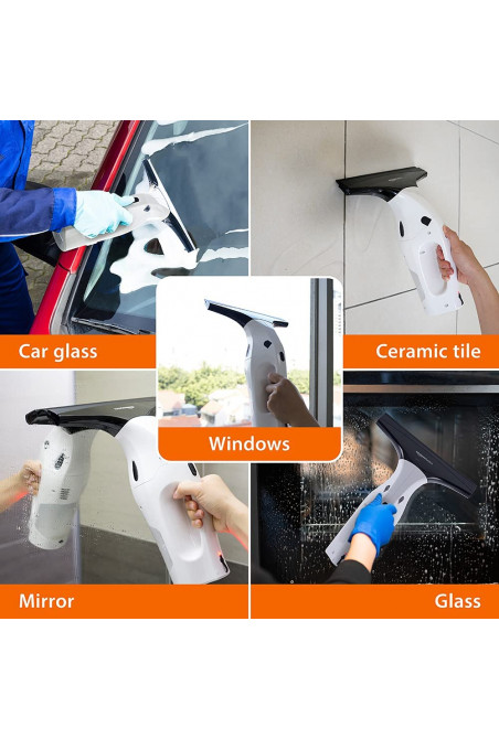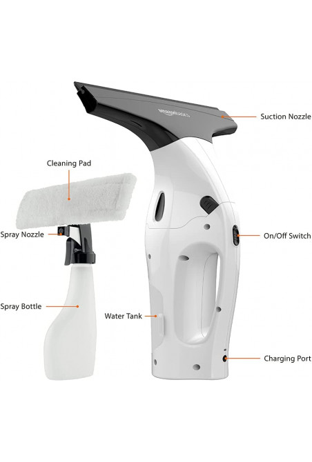 Amazon Basics - Juego de aspiradora limpiacristales con batería recargable de litio para ventanas, azulejos, espejos y mampa...