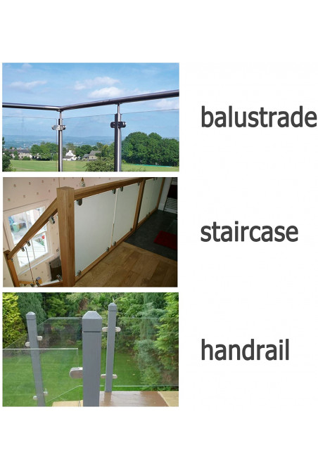 16 Piezas Abrazaderas de Cristal Clips de Vidro Cuadrado Acero Inoxidable 304 Glass Clamp Abrazaderas para Barandilla Escalera Pasamano-Satinado 10-12mm