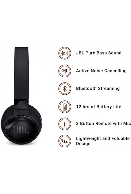 JBL Tune 600BTNC - Auriculares supraaurales inalambricos con cancelación de ruido activa, bateria de hasta 12 horas con BT y NC activo, negro